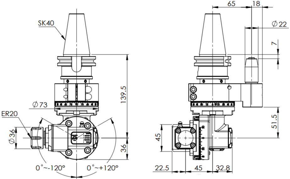 ◎ SK40-ER20 Light Angle Head-Universal (AHL Type)